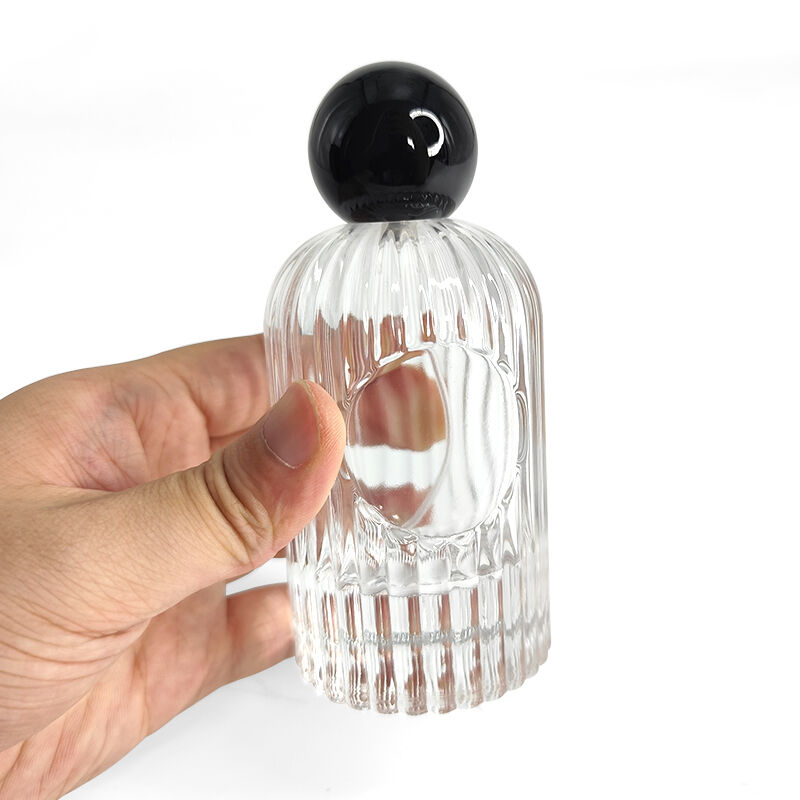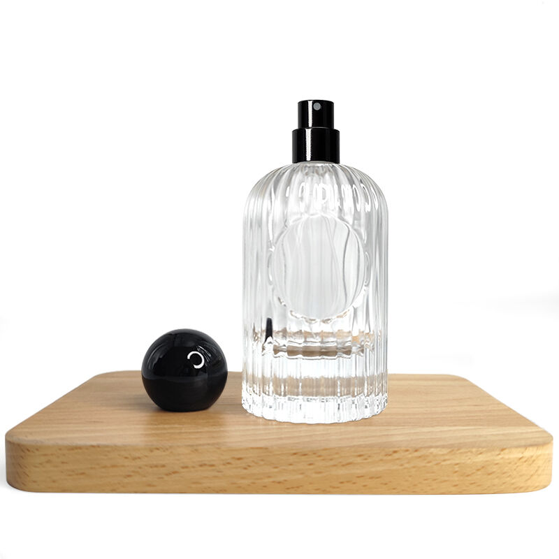 This 100ml perfume bottle is a popular product under the search terms "retro perfume bottle" and "textured glass fragrance container" in the perfume industry. With high permeability glass as the base, the core adopts the design of vertical ribs+oval concave in the middle: the bottle body is covered with fine vertical stripes, and the transparent texture of the glass is strengthened through light and shadow refraction, which meets the selection requirements of "textured perfume bottle"; The elliptical concave surface in the middle not only breaks the monotony of the texture, but also adds soft details to the bottle body, suitable for the style positioning of "elegant retro fragrance packaging", especially suitable for brands with mature fragrances such as Oriental and wooden tones.
