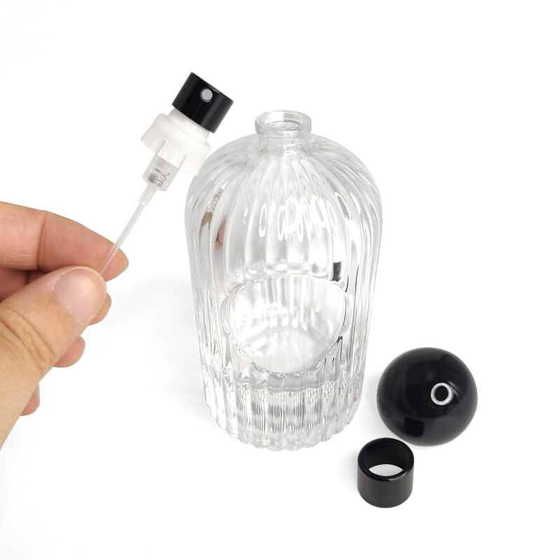 100 ml glass bottle striped perfume bottle luxury glass atomizer perfume spray pump spray high quality