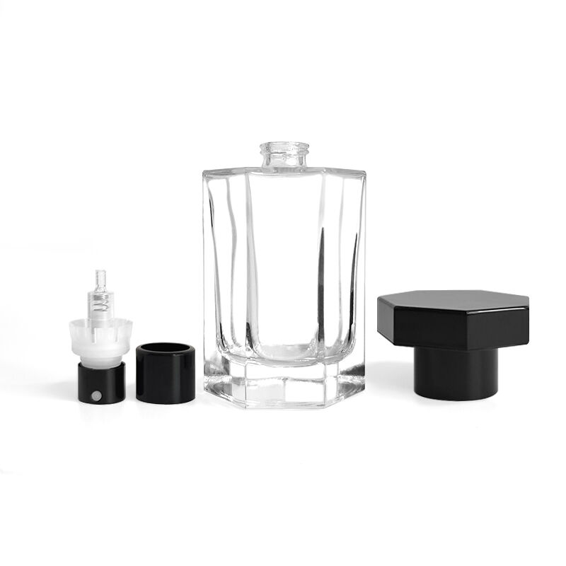 This perfume bottle takes high permeability glass as the carrier, and stands out by virtue of the three-dimensional geometric appearance design: the bottle body has sharp edges and corners, and each line has been carefully polished, presenting a neat and rhythmic visual effect; The transparent material is pure and flawless, which can clearly reflect the amber, lavender and other colors of perfume, making the product visually attractive from the display link. The compact size of 50ml is suitable for portable scenarios, while the 100ml capacity meets the long-lasting needs of daily fragrance use. The dual size layout provides the brand with flexible product line planning space.