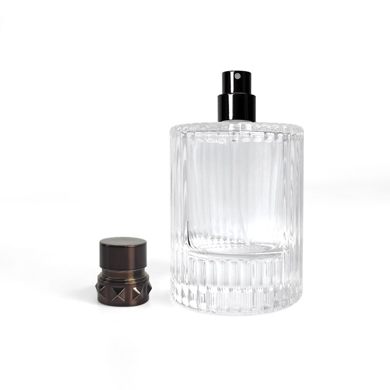 This perfume bottle provides 50ml and 100ml dual capacity. It is based on high permeability glass. The bottle body is designed with full body vertical ridges: the fine three-dimensional lines not only strengthen the transparent texture of the glass, but also present a clean layer of luster under the light and shadow, while the simple bottle body has its own delicate edges and corners. The outline of the bottle is regular and atmospheric, without redundant decoration, but it shows a calm style, which can clearly present the original color of perfume, and it is suitable for wooden tones, exotic tones and other styles; Paired with customizable bottle caps, it can fit the brand's tone through processes such as spray painting and screen printing, making it a fragrance container that combines texture and adaptability.