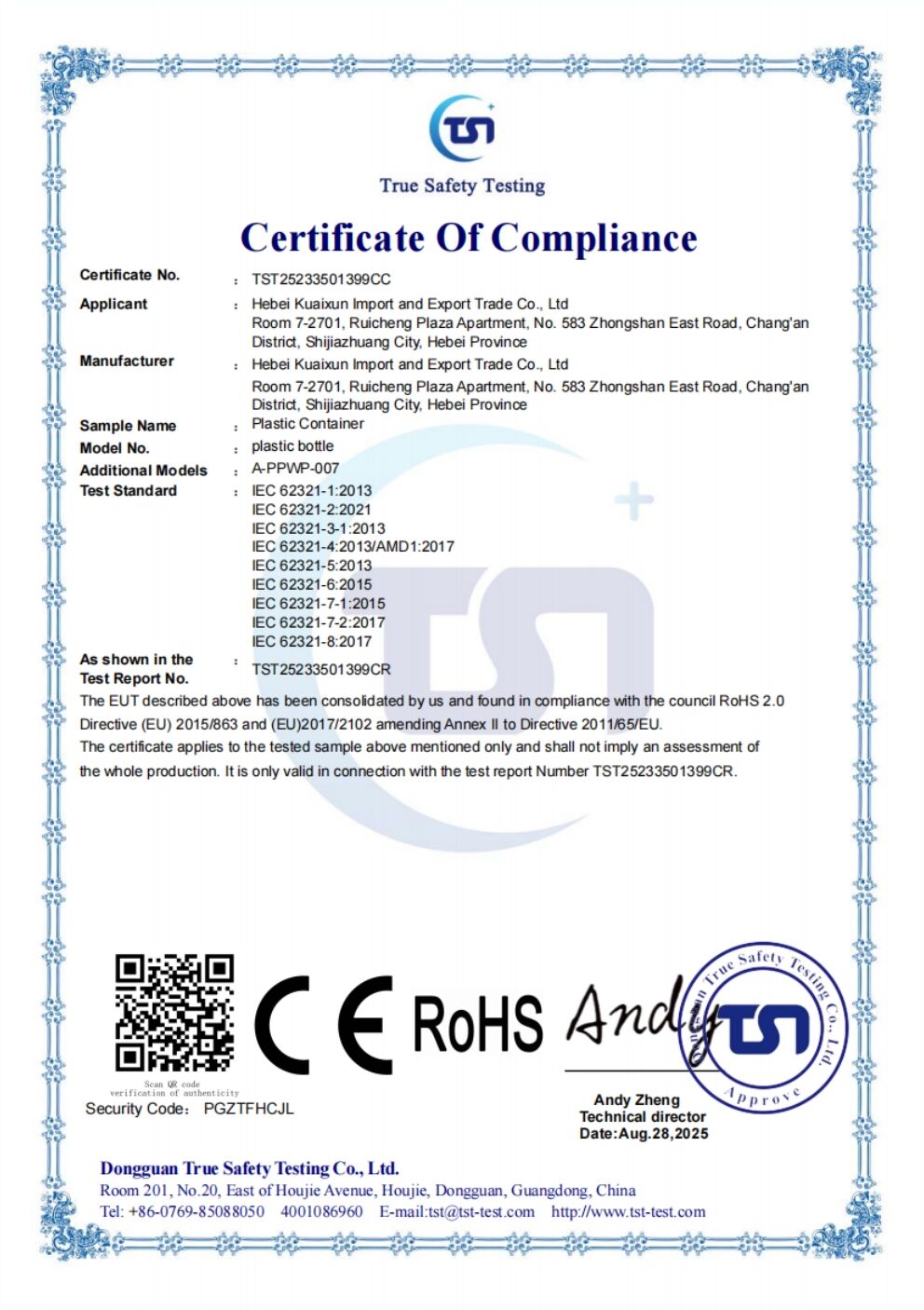 Hebei Kuaixun Import and Export Trade Co., Ltd. has successively obtained production license qualifications, passed CE certification, ISO9001 certification, trademark registration certificate, Alibaba verified factory, environmental protection production qualifications and other related qualifications, and won the 2024 tax star enterprise. Express insists on winning the market with quality and winning customers with reputation.