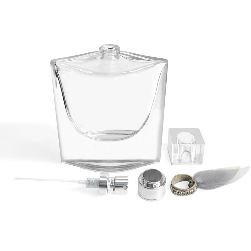The soft arc waist closing design at the bottom of the bottle weakens the cold feeling of hard glass, while improving the holding comfort. It is a high fitting product of "texture perfume bottle" and "elegant fragrance container"; The transparent material can completely present the primary color of perfume, matching the purchase scene of "transparent perfume bottle empty bottle" and "fragrance packaging container".