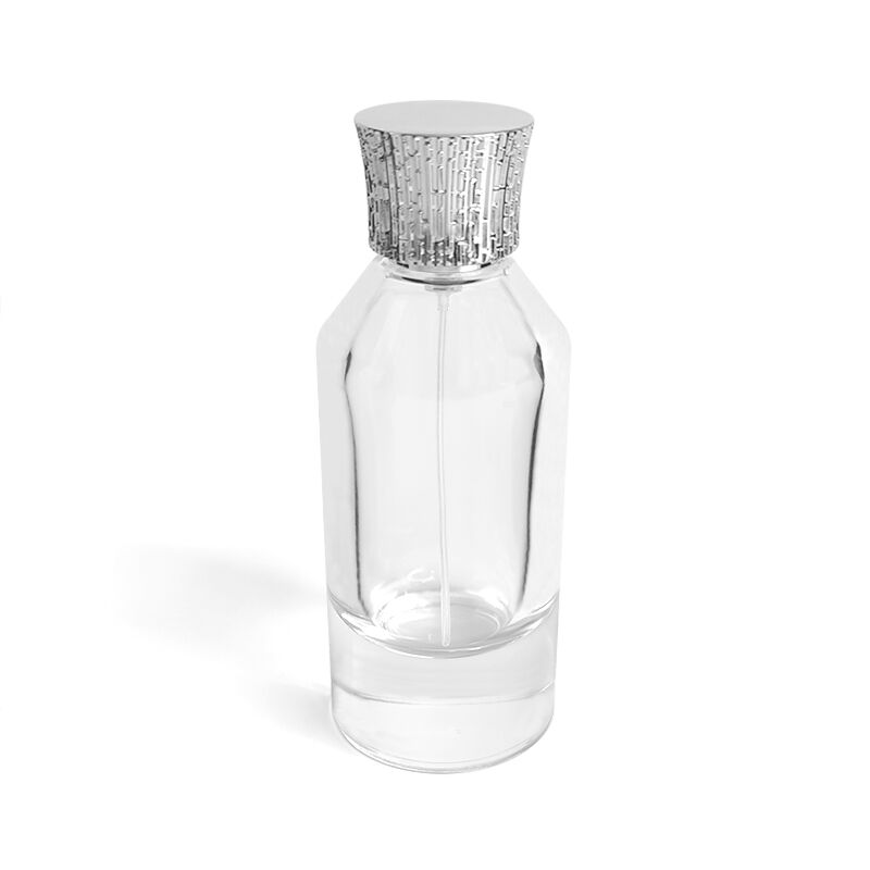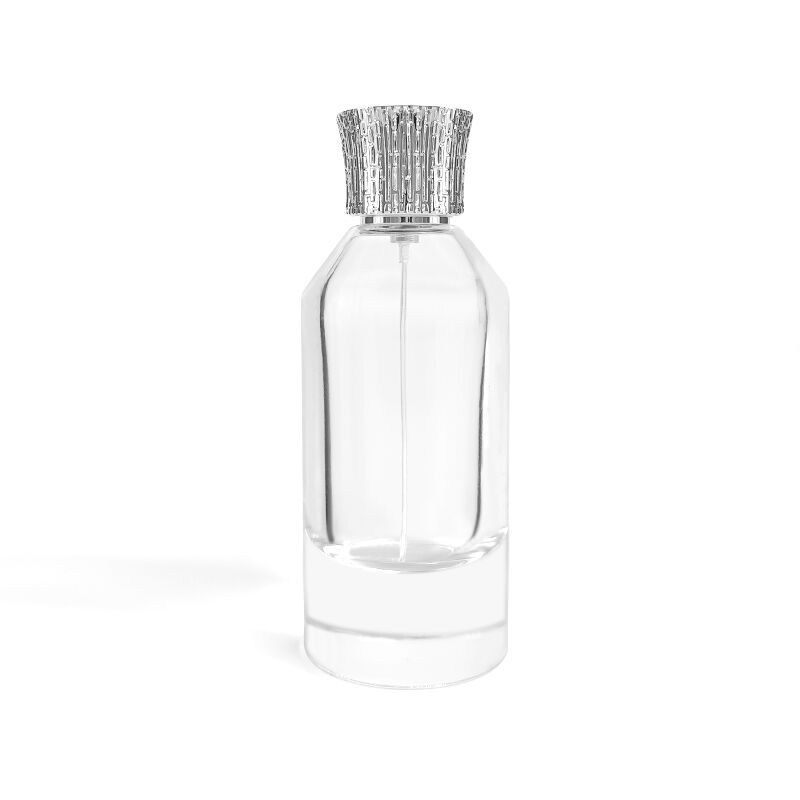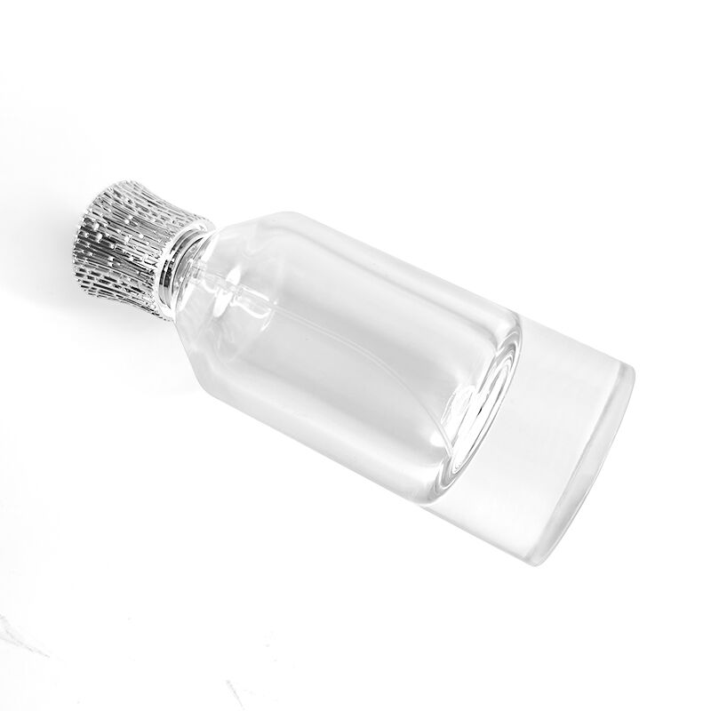 This 100ml perfume bottle is mainly made of high permeability glass. The bottle body is neat and simple. The middle section enhances the delicate sense of the contour. The bottom frosted glass and the transparent bottle form a hierarchical transition, and the texture is clean and restrained. The texture details of the silver patterned bottle cap complement the neat style of the bottle body, and the cold toned metallic texture balances the transparency of the glass, presenting a simple yet exquisite aesthetic overall. The bottle body supports customized spray painting and silk screen printing, which can adapt to the style expression of different brands while retaining the texture of the container itself.