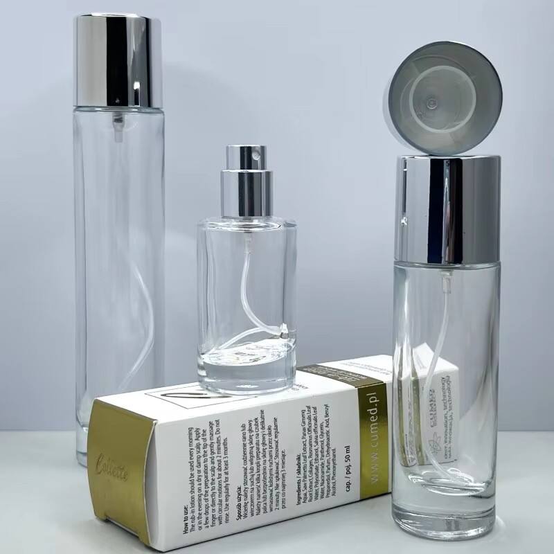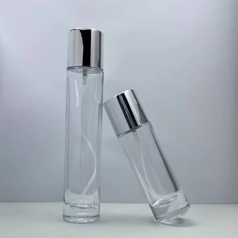 This group of perfume bottles uses transparent glass and silver caps, which are simple and exquisite. When the bottle is empty, it can be used as the appearance display prop of perfume bottle for beauty shop display, fragrance brand design reference, or DIY creative transformation to add a unique sense of refinement to the space and interpret pure fashion aesthetics.