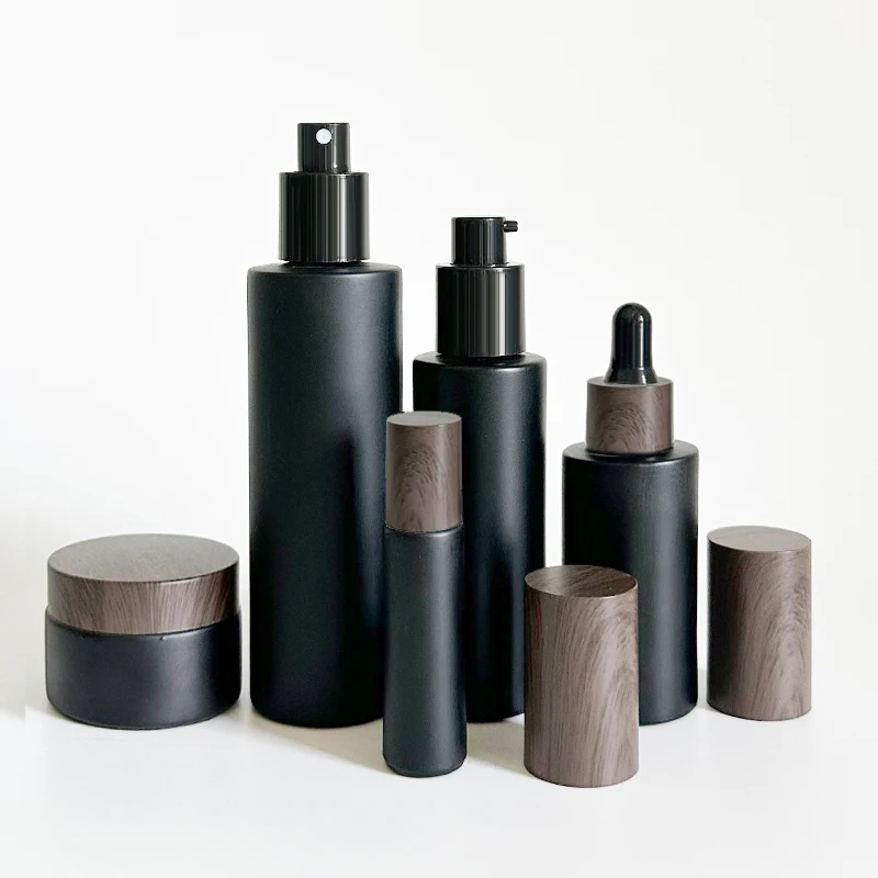 Matte Black Skincare Bottles 30 ml 50 ml 60 ml 120 ml Matte Black Glass Spray Bottles Black Lid