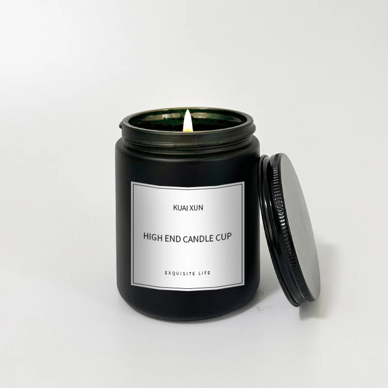 Wholesale 4oz 8oz Candle Jar Black Amber Frosted Clear Green Blue Cylinder Glass Candle Jar With Lid